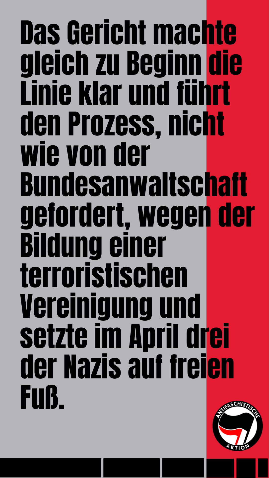 Wir können nicht leugnen, dass uns das alles zu schaffen macht. Dennoch und gerade deswegen wollen wir Aufmerksamkeit für ein Verfahren schaffen, das in der Geburtsstadt des NSU und darüber hinaus skandalös geringes Interesse hervorruft – obwohl es sich um eine Gruppierung handelt, die versuchte, Mordpläne umzusetzen, und obwohl die Behörden einmal mehr signalisieren, dass sie an einer ernsthaften Verfolgung von Nazistrukturen kein Interesse haben. Darum adressieren wir auch nicht nur staatliche Institutionen, sondern rufen dazu auf, im Streit für die Gesellschaft der Vielen einen eigenen Umgang mit Neonazigruppierungen und -terrorgruppen zu finden und ins Handeln zu kommen.
